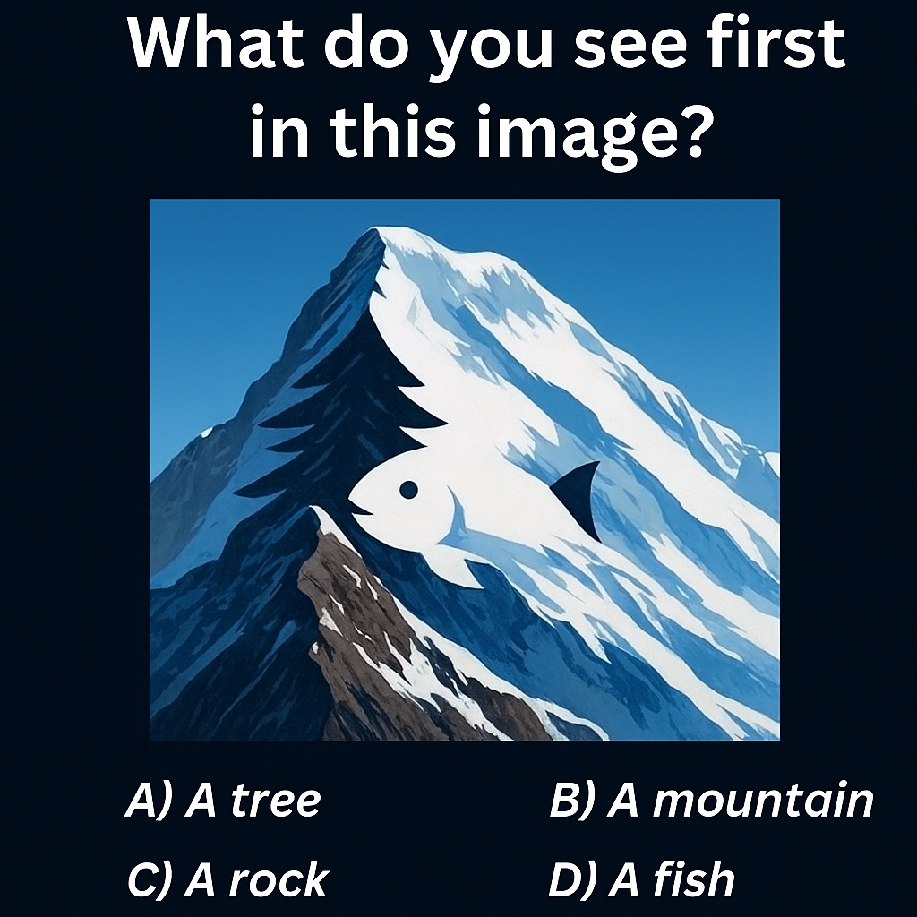 This new illusion is blowing up online because it instantly divides people. The picture looks simple, but depending on which part your eyes lock onto first, you might see a tree, a mountain, a rock, or a fish. And that first impression actually says a lot about how your brain interprets visual information.